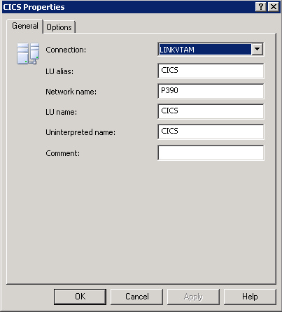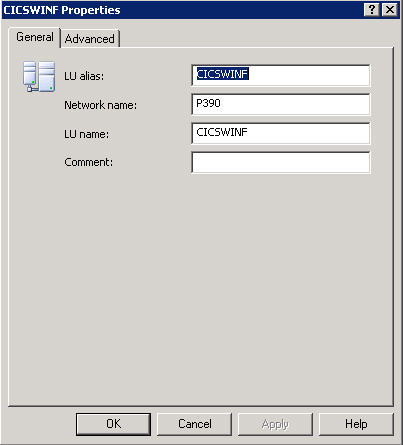 in xcics.conf: set application_name=CICSWINF; # (1) the same as local LU alias Mainframe side LU definition in the partner VTAM for UNIX system XCASNET VBUILD TYPE=SWNET CICS CEDA definitions: DEFINE CONNECTION(WINF) GROUP(XCICS001)