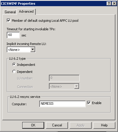 When Synclevel 2 is required during APPC processing, the LU6.2 resync service must be set to the local computer and enabled.
