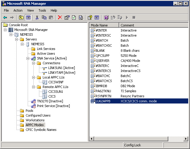Additionally, a new APPC mode has been defined, to fit the one of our mainframe: