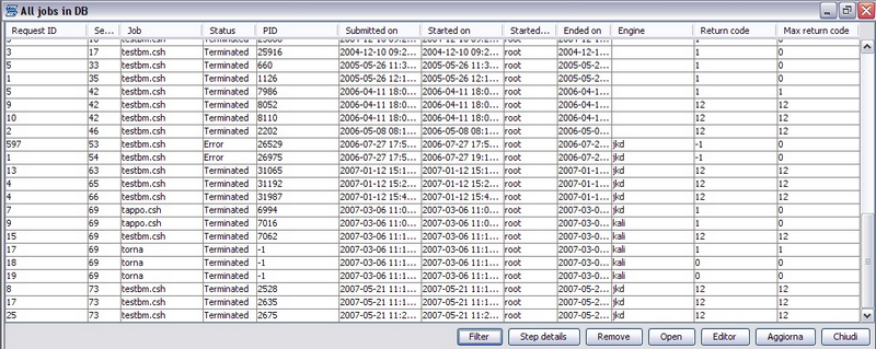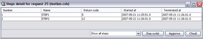 A most detailed report of the job execution, may be obtained using the "Step detail". It shows a report of the step return codes detected during the execution