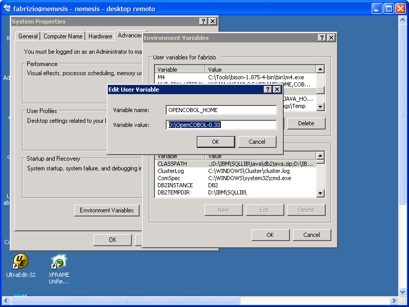 and the LD_LIBRARY_PATH must include the GMP library path. Once configured build as usual. Example # export LD_LIBRARY_PATH=/opt/gmp-4.2.2/32/lib:$LD_LIBRARY_PATH Installing on Windows To compile under Windows, you need Microsoft C SDK or Microsoft VisualStudio 2005. Do not use GCC, CYGWIN or MINGW to compile OpenCOBOL if you want to use it with XFRAME. Then download OpenCOBOL 1.0 or higher from OpenCOBOL web site, or from HTWC website. Then download the file winbuild.zip from HTWC's website (http://www.htwc.com/opencobol), extract the content of the ZIP file over the OpenCOBOL source directory. Note: you must extract the zip OVER the directory and not into: this means you have to see the file configure.pl in the OpenCOBOL sources root directory. Open a Microsoft VisualStudio command prompt (or a prompt with the MS C compilers correctly configured) and change directory to the OpenCOBOL sources root. Configure OpenCOBOL with the command "perl configure.pl" and provide the following settings: