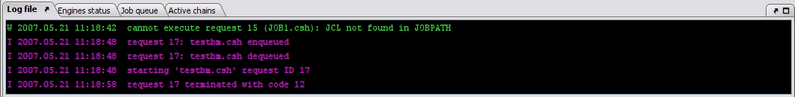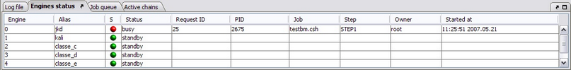 The log window may be cleaned up using the appropriate menu item. Engine Status The engine status area show information about the status of the engines.