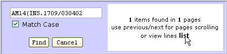 The results may be navigated with "previous" and "next" or listed clicking on "list". The result occurrence are highlighted in the text.