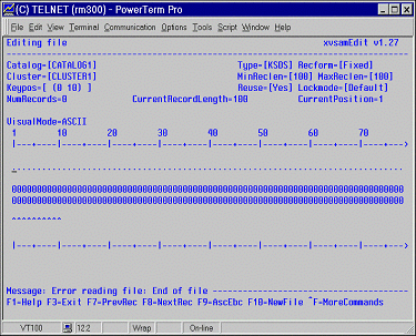 In the middle part of the map, the content of each record both in character and in hexadecimal format is shown, while the third one, located in the lower part of the screen contains the message line and information about the usage of available function keys.